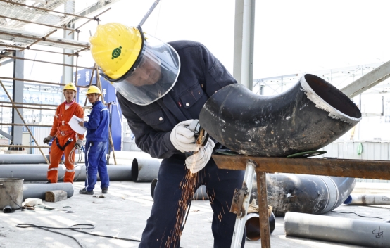 ¡°Ê®ËÄÎ塱ר°àPBATÏîĿһÃû¹¤ÈËÔÚ¼Ó¹¤Íä¹Ü¡£